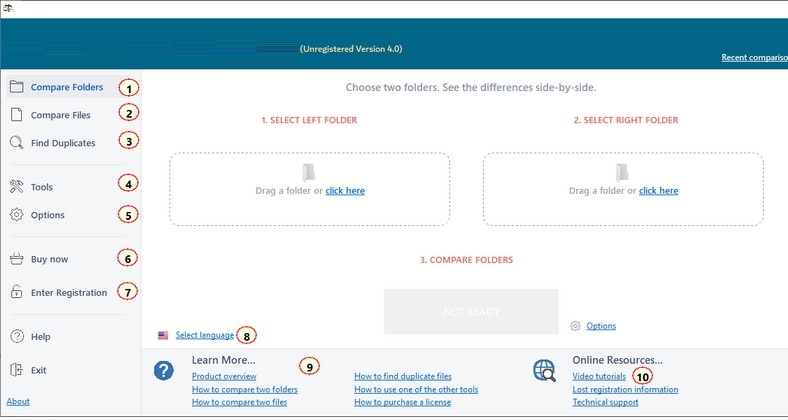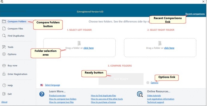 要比较两个文件夹,请选择文件夹,然后按“就绪”按钮。 分步说明如下: