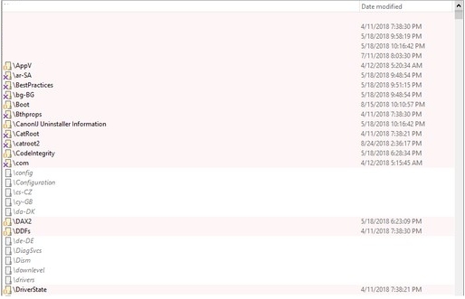1.浅红色底色的行表示两个文件夹之间的项目不同。
