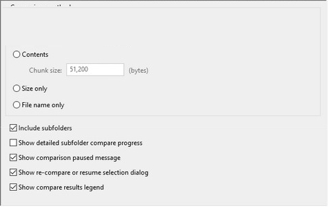 这些选项使您可以更改程序在比较文件夹时使用的设置。