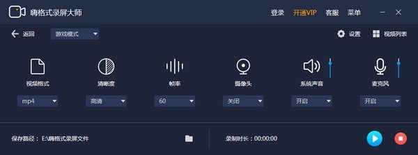 设置录制视频的格式、录制画质不同的清晰度、录制的帧率、摄像头的开启和关闭、系统声音的开启和关闭、麦克风声音的开启和关闭;