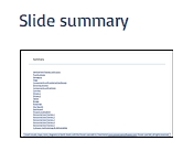 单击“幻灯片摘要”将自动创建一张幻灯片,该幻灯片汇总了您选择的所有幻灯片。将为每张幻灯片创建一条线,从而在单击中创建一个内容表。所有幻灯片都使用链接进行汇总,以便您轻松访问摘要中的任何幻灯片。幻灯片摘要也是一个很好的方式来概述您的演示文稿,并检查您的故事情节是否有意义