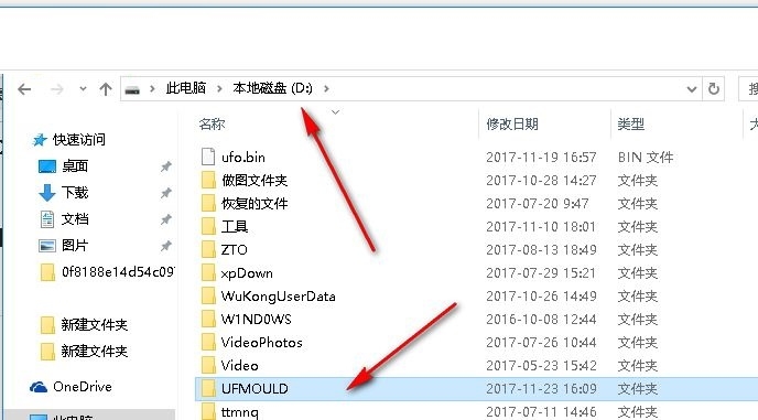 3、将其这个UFMOULD文件夹复制到您电脑的D盘上使用