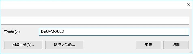 6、新用户的变量设计,输入变量的名称UGII_USER_DIR,输入变量值的参数“ D:UFMOULD”,点击确定