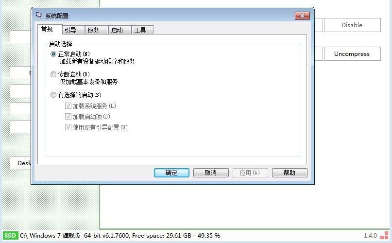 7、系统配置包括了启动选择、诊断启动、有选择的启动等;
