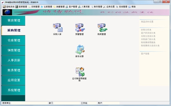 特博星级酒店信息管理系统官方版是款设计相当严谨且非常实用的酒店信息客房管理工具,特博星级酒店信息管理系统官方版拥有丰富的功能,简洁的操作界面,其可以帮助用户实现整个业务流程的信息化管理,为酒店领导提供实时的客房出租及预定状况、客人信息、营业情况、收款等全局信息,是一款非常高效专业的软件。