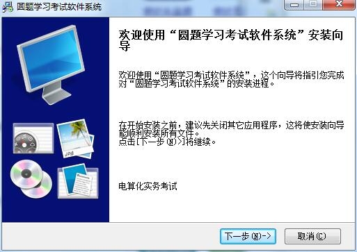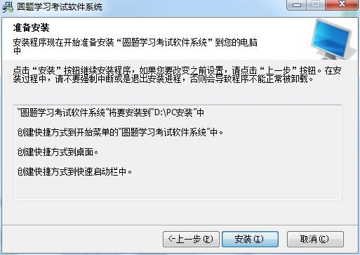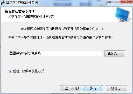 4、选择开始菜单文件夹,默认文件夹“圆题学习考试软件系统”,点击下一步;
