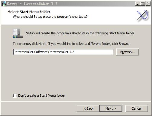 4、选择开始菜单文件夹位置,默认为“PatternMaker SoftwarePatternMaker 7.5”