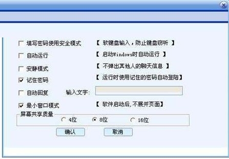 6、设置屏幕共享质量、设置不弹出其他人的聊天弹出信息,支持安静模式、自动回复