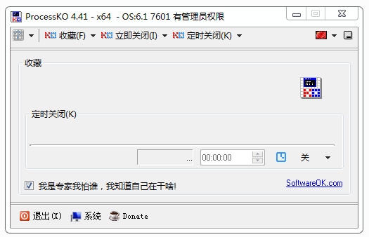 3、Ko Timer则是定时强制关闭功能,在菜单中选定进程后,在Ko-Timer处选择时间就可以激活这个功能。