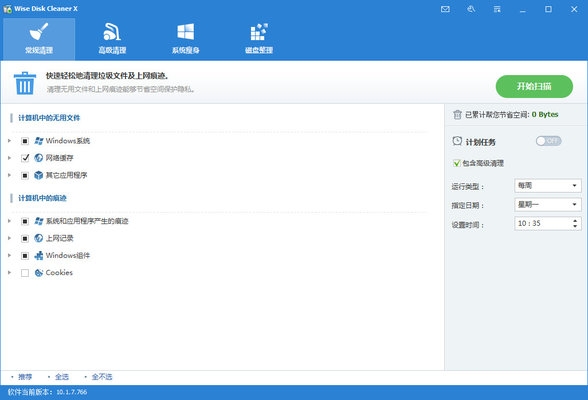 明智的磁盘清洁,检测和清除PC上的所有垃圾文件,包括临时文件,IE浏览器的历史和其他垃圾文件;