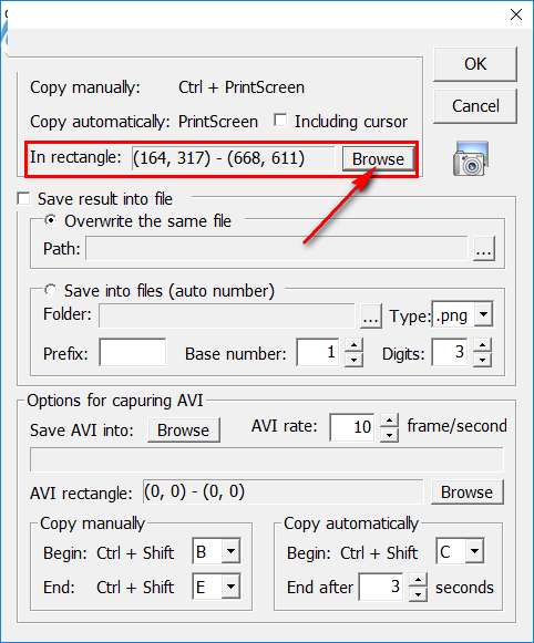11、这里是AVI录制的区域设置界面,点击browse选择你需要录制的区域,开始:ctrl + Shift+B