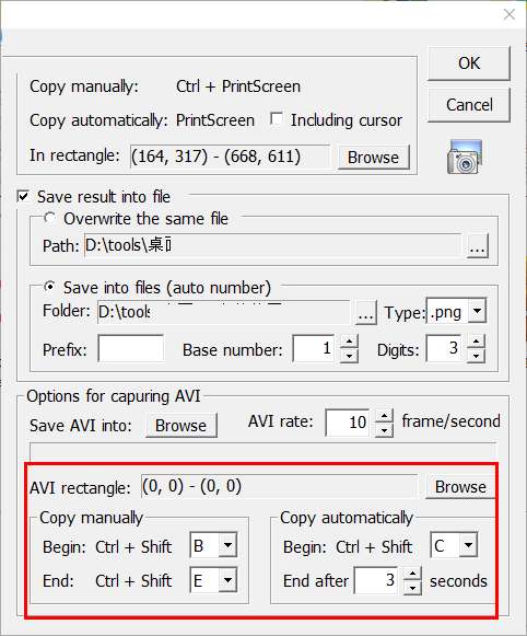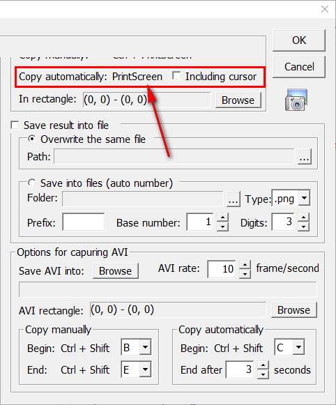 5、自动复制:PrintScreen,您也可以勾选“包括光标”,对鼠标录制