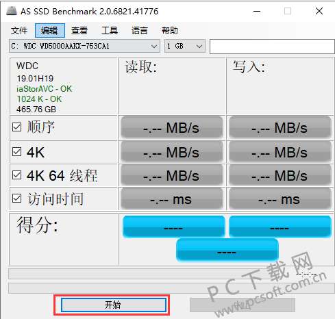 3、我们选择好测试的硬盘、数据量以及测试项目后,就可以点击界面下方的开始进行测试了。