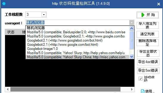 然后选择线程数和 user agent,点击“开始”即可批量检测。