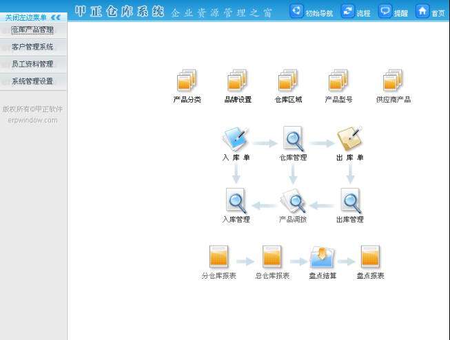 甲正仓库系统含仓库设置管理、产品进出库、员工资料管理、客户管理等模块。 灵活处理仓库业务,成品入库、材料出库管理、调拨、盘点、进出入库实施分析报表等。强大的权限分配操作,严格控制仓库出入库。
