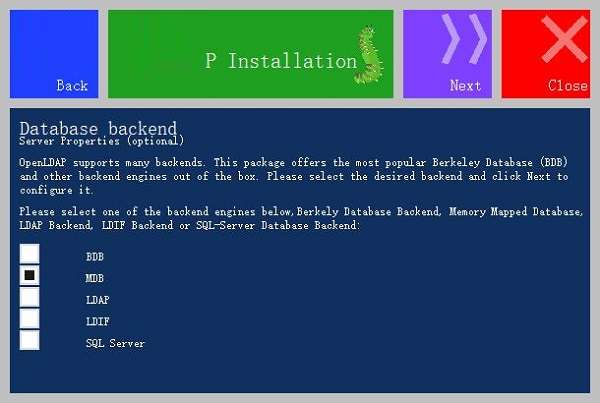 9、请选择下面的一个后端引擎,Berkely数据库后端,内存映射数据库LDAP后端,LDIF后端或SQL服务器数据库后端: