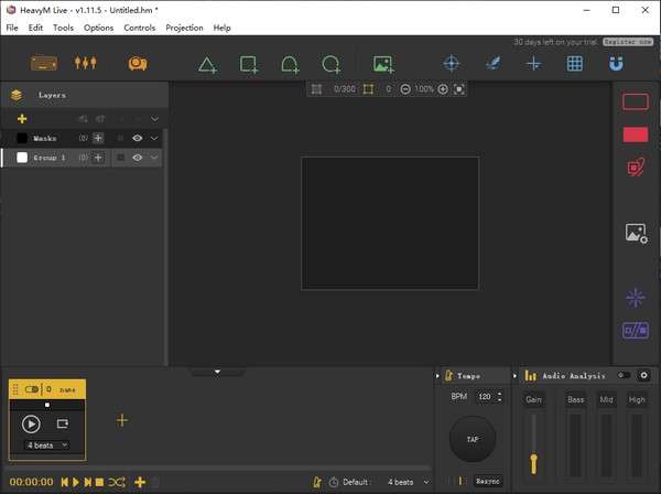 HeavyM Live是一款功能强大的投影映射软件,界面美观大方,功能强劲实用,其功能非常的完善。安装将为您提供变形工具、音频反应和MIDI控制操作,具有易于使用的创作工具和视觉效果库。让您可以带来全新的舞台设计体验,适用于派对、音乐会、演出、装置、演出等各种场景的设计。借助它,用户可以定义完美适合投影映射区域的轮廓,创建的即用型动画,可在几分钟内创建投影映射。它们会自动适应表面轮廓。您可以通过其只管的绘图和创意工具,充分发挥您的想象力和创意,不仅可以通过内置的预设形状,也可以自由创作全新的形状,一切都在于你的创意之间,你也可以快速拆功能键一个惊人的动画,可以添加视频内容,并通过添加动画、色彩等来带来全新的感受,当然,有了视觉感受,听觉上自然也是不能错过的,内置丰富的声音,您可以通过声音分析,将视觉效果、现场播放音乐同步,最完美的协作带来最完美的效果。使用世界上最完整,最多样化的效果库,为您的装饰增添动感,色彩和活力。您可以使用自己的照片和视频,会自动将它们调整到您的投影映射表面。