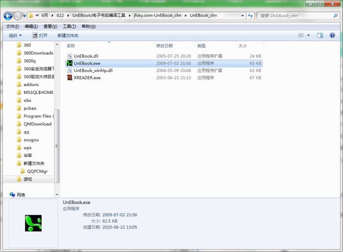 2.解压UnEBook软件,运行“EXE.文件”