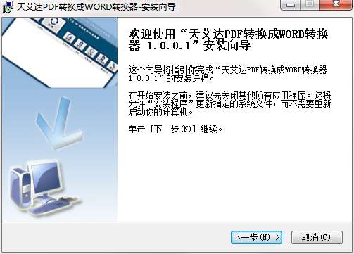 3.双击打开,进入天艾达PDF转换成WORD转换器软件界面,点击下一步