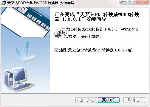 7.点击完成,天艾达PDF转换成WORD转换器软件安装成功