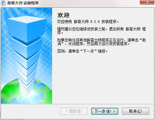 3.双击打开,进入脉客大师软件界面,点击下一步