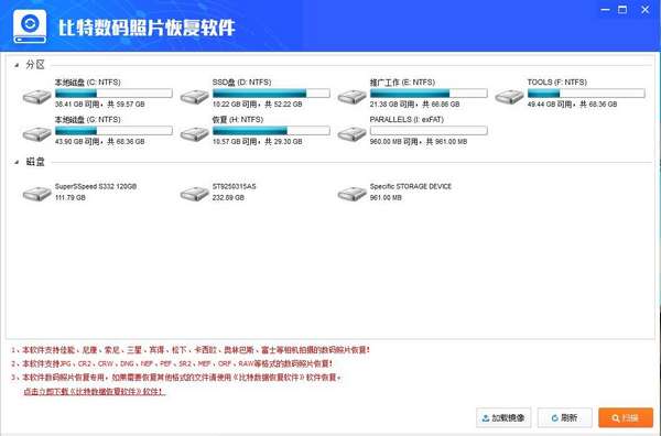 比特数码照片恢复软件官方版是一款简单实用的数码照片恢复软件,比特数码照片恢复软件中文版可以恢复误删除文件、误格式化分区、误分区、文件不能复制、分区打不开、提示RAW等,比特数码照片恢复软件官方版支持硬盘、U盘、内存卡等多种设备;支持FAT16、FAT32、NTFS、exFat等多种文件系统。