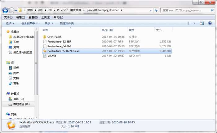 2.解压pscc2018人像磨皮插件软件,运行“EXE.文件”