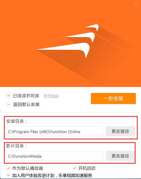 1、在PK下载网将风行视频下载下来,然后双击打开下载的.exe文件,进入安装界面,可以选择一秒安装。