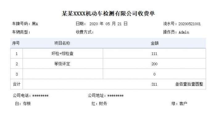 简易版机动车检测站收费管