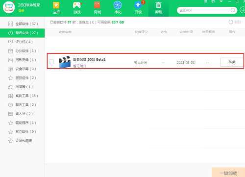 方法二:安装并打开360软件管家,在卸载选项的列表中找到影音风暴软件,点击卸载即可