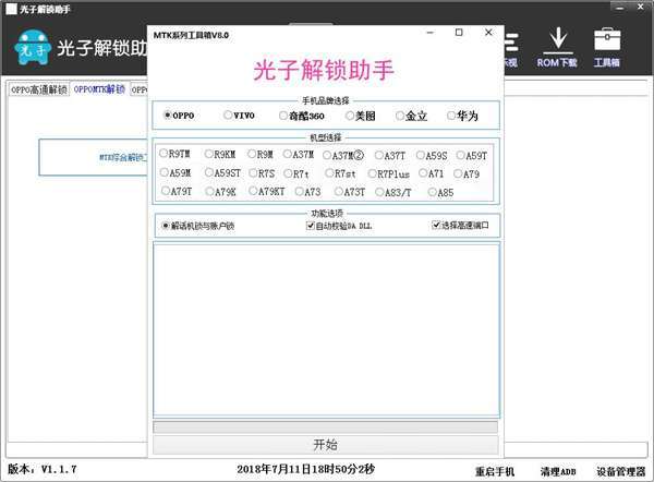 光子解锁助手是一款专门为用户提供手机刷机功能的工具,支持vivo系列、OPPO系列、华为系列、360系列、美图系列等等大部分安卓手机设备。用户可以直接使用光子解锁助手免卡密版来将刷机包安装到自己的手机里,且操作简单,用户可以轻松上手。