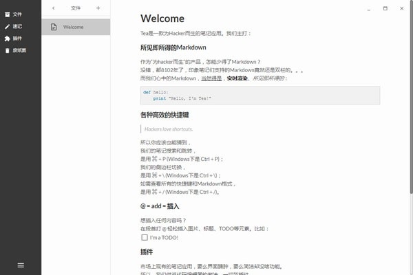 Tea是一款为Hacker而生的笔记应用。我们主打: