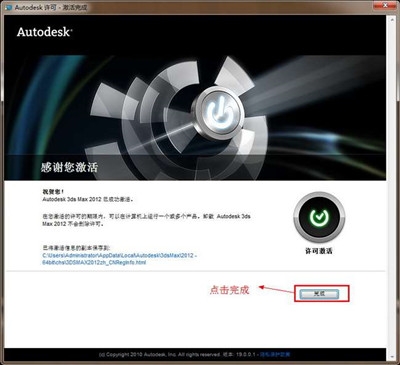 7、这时就会显示激活完成了。点完成按钮,可以正常使用3DMAX2012软件了。