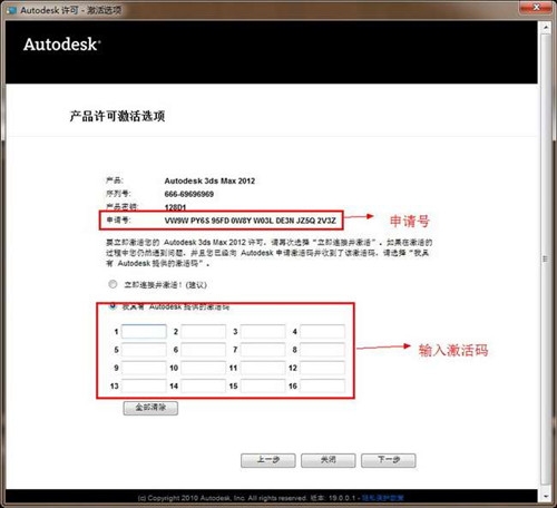1、输入安装序列号及密钥,安装成功后,点击激活按钮,获得申请码