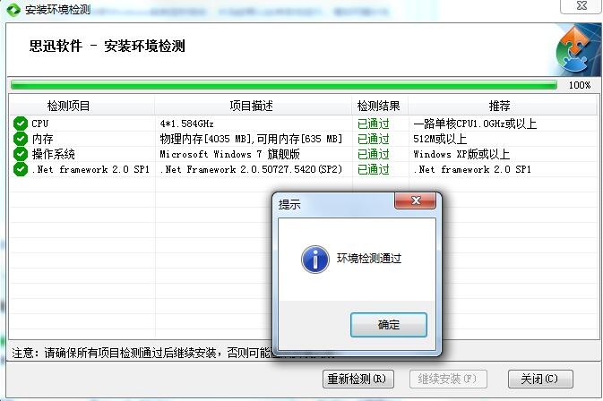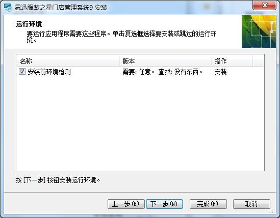 3、提示您检测环境通过,这时候运行fs9_client201707文件夹中的setup.exe启动思迅服装之星