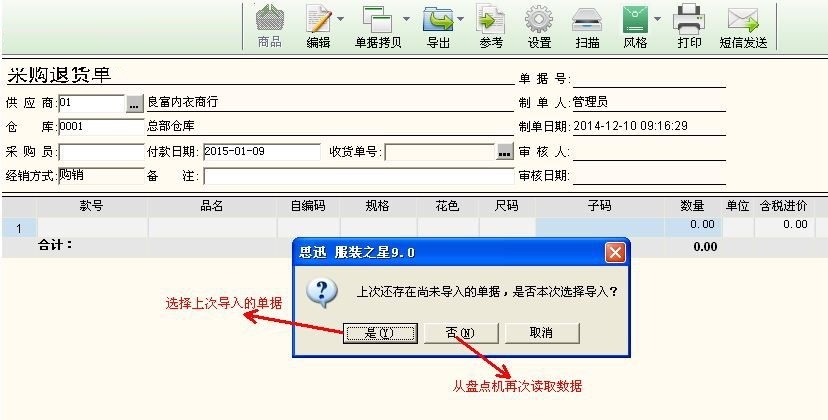导入成功后弹出选择单据的界面,未引入下次可以再次引入无须多次读取盘点机