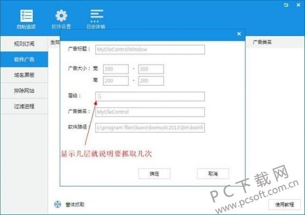 3、在打开的ADSafe净网大师广告拦截窗口中显示的层级数,说明您要抓取几次。