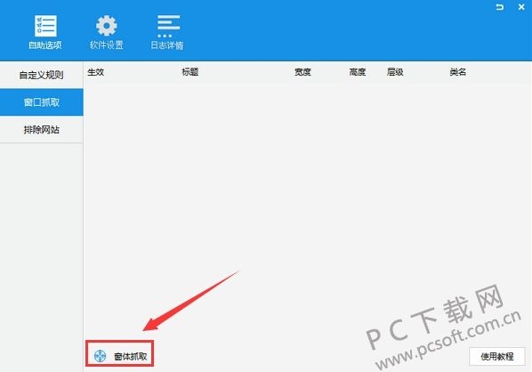 1、打开ADSafe净网大师,点击左下角的【窗体抓取】。