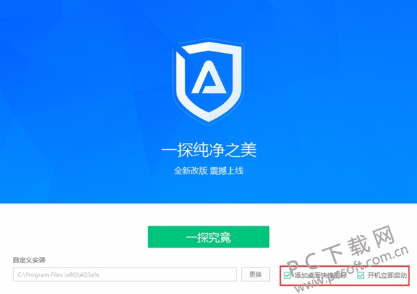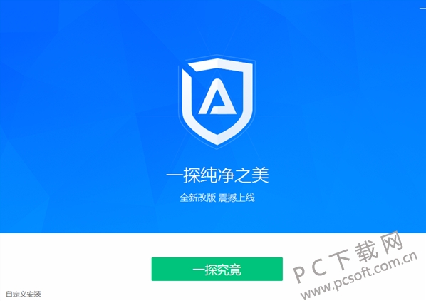2、如果你想默认安装,直接点击界面的一探究竟,净网大师会自动安装到C盘中。你也可以点击界面下方的自定义安装,然后自行选择安装位置,小编建议你自行选择安装位置进行安装。