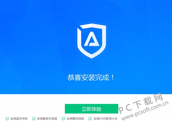 5、ADSafe净网大师安装完成,在界面的下方还有附加的其他安装选项,我们取消勾选后点击立即体验就可以了。