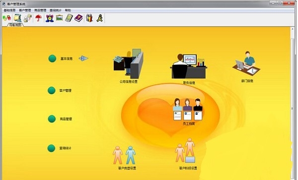 1、基本信息:公司信息设置、职务信息、部门信息、员工档案、客户类型设置、客户阶段设置、客户级别设置。