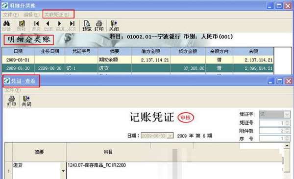 软件提供了完整的账证一体化查询功能,可以根据总账直接查到它所辖的明细分类账,再从明细分类账一直查到记账凭证。