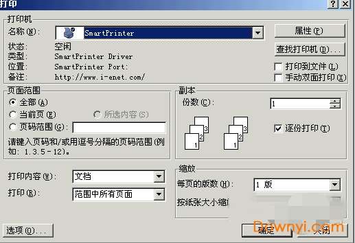 2、从打印机下拉列表框中选择 smartprinter 打印机。