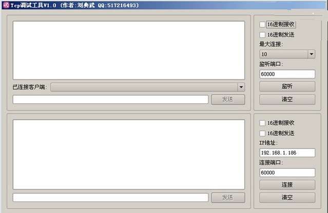 TCP调试工具是款可以通过监听和链接端口来调整TCP协议的TCP调试助手,软件支持16进制的接收和发送,无需安装,解压即用,用户打开软件后,只需要选择是否采用16进制的接收和发送、最大连接数量、监听端口、IP地址,就可以进行监听和连接了,成功监听和连接后,就可以发送数据了,有需要的用户不妨下载试试看吧。