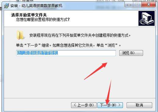 3、选择开始菜单文件夹,点下一步