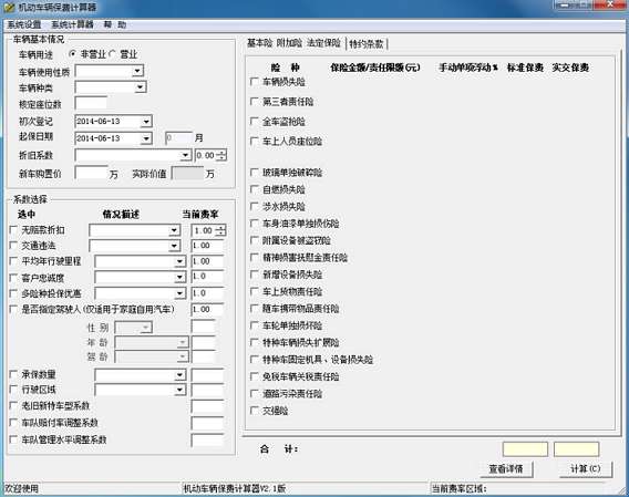 机动车辆保费计算器中文版用户只需按照软件提示选择或输入相关条件就可轻松计算出机动车的保费;