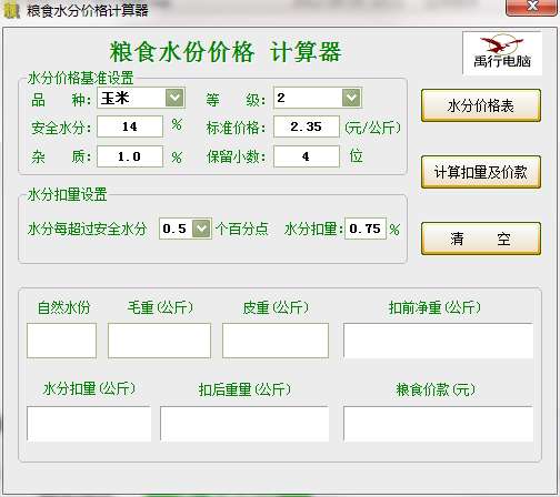 粮食水份价格计算器软件特色