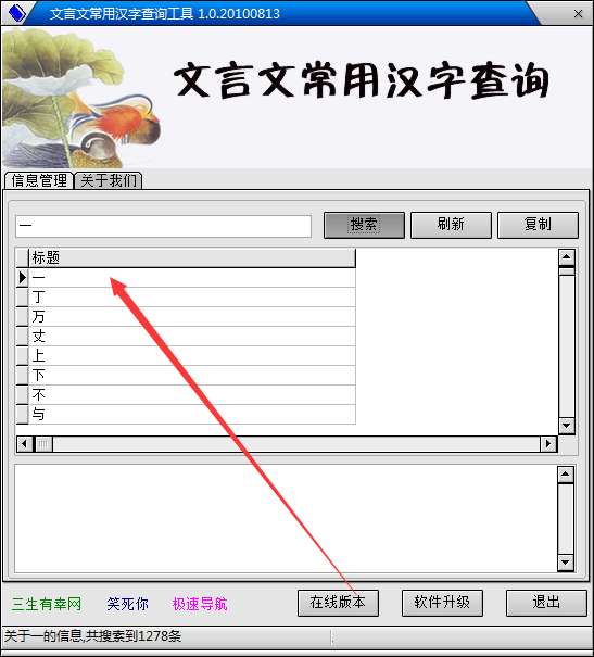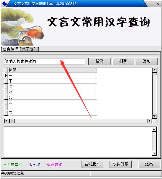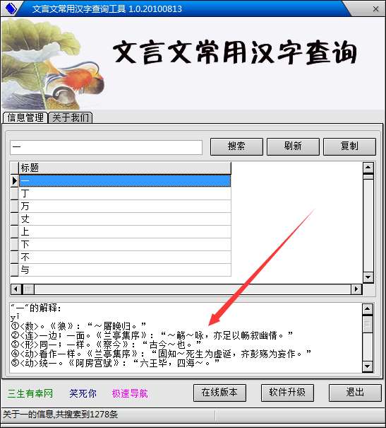 文言文翻译器可以非常智能的给你翻译每字,或词的意思,如果没翻译用现代汉语来读都很难读得通的。文言文常用汉字查询工具可以方便的查询文言文中汉字的解释。
