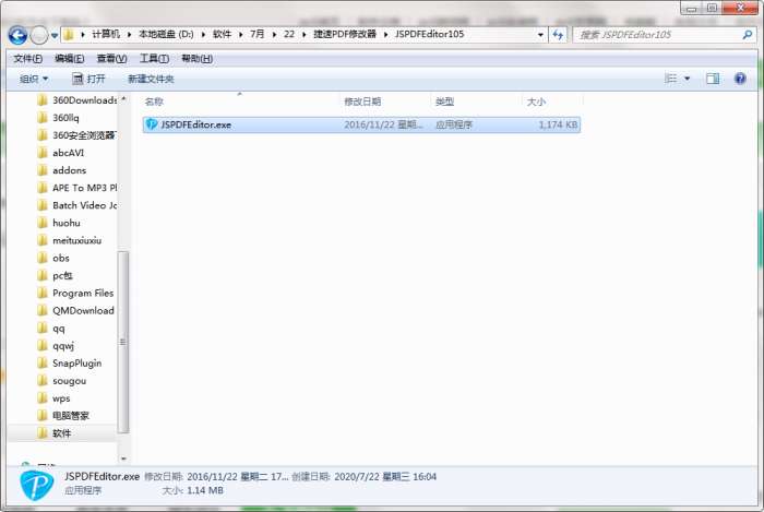 2.解压捷速PDF修改器软件,运行“EXE.文件”