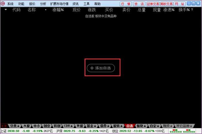 2、进入图示界面,点击“添加自选”